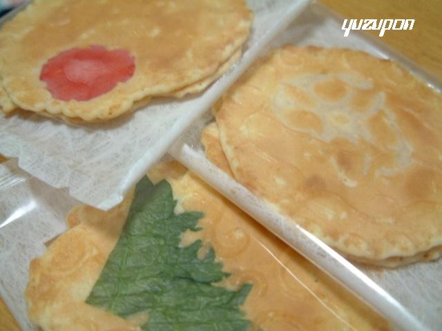 紫蘇のせんべいね。食べると紫蘇の香りがするねん!!紫蘇ってすごいっと思ったよ!!