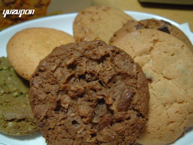 何年ぶりかに食べた店のクッキー中央から右回りで「ミルクチョコレートマカロン」「ストロベリークリームチーズ」「エデンチョコレートチャンク」「トフィー」「チェダーチーズ」「抹茶」コレを2枚ずつ特別にキッチンで焼いてもらって持って帰ってきたよ~焼き立てが旨いもんね。忙しかったら自分で焼かされるところだったわい暇でよかった!!