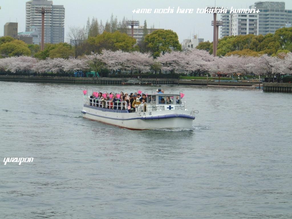 遊歩道から見える景色は、こんな感じです。桜の季節には客船がたくさんで普段はアクアライナーが走ってます・・・低い橋の下を通る為屋根が低くなるんですよ・・・1度だけ乗った事があるなぁ~大川の桜は満開で風が吹くとチラチラと花びらが落ちてきてました。この遊歩道には屋台がいっぱい!写真を撮るのすっかり忘れてました。そうそう「林檎飴」屋さんに「とまと飴」が売ってました。好奇心旺盛なyuzuponですが買えなかった・・・だってね。食べ歩きすると絶対に串から落ちそうだし持って帰るには不安だしで、皆さんがもし見つけたら是非に・・・さ~て今日は、このへんで・・・