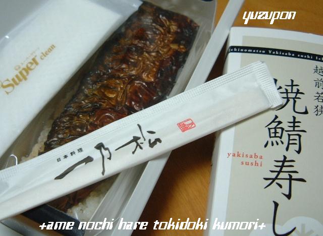 空弁覚えてますか?もうかれこれ流行から3年近くなるでしょうかね・・・まさかまだ週末に店で売っているとは思わなかったよ…あかぬけした入れ物にはいってるじゃん!あっ紹介忘れてた!若狭の「焼き鯖寿司」です。ちゃんと空弁おしぼり・お箸も付いてるし鯖寿司食べやすくカットしてあります。