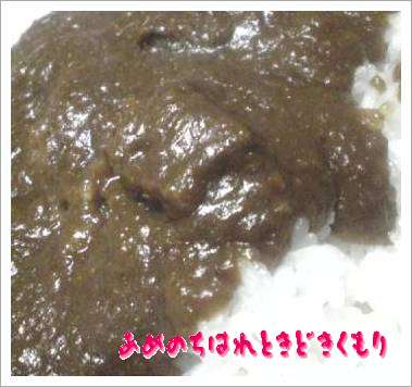 えーぃ「にんじんも玉葱もFPで・・・ついでに半分残ってた林檎も・・・」お肉も安物を少し手間をかければ良い味になりますね~もちろんルーも市販物中辛を使ってFPで潰した人参・玉葱・林檎を鍋で炒めながら隣でフライパンを熱して塩・胡椒しといた肉を炒めます焼き色が付いたら鍋の物をフライパンの方へ移して肉汁を絡めて炒めます・・・ある程度水分が飛んだら鍋に移し変えて水を入れて一煮立ちしたらルーを入れて混ぜ好みの味にしあげます。中辛が少し辛くなって大人の味になります。少しの甘味もあって美味しいです。主人は「カツカレーに合いそうなカレーや~」っとカツカレーを催促している様子・・・ナンも焼けばよかったなぁ~