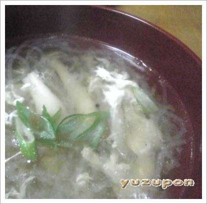後は、お決まりのワカメスープです。湯気でレンズがくもってるし・・・ワカメたっぷりで、さっぱりが旨いね!さて今夜ご飯なにしょうかなぁ??一日中食べる事考えてるyuzuponです・・・