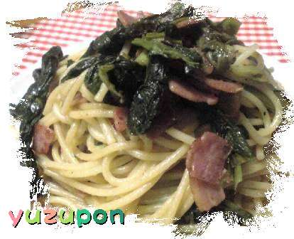 頂いた「高菜漬」を使って「高菜漬とベーコンの和風ペペロンチーノ」ネーミング長!古漬じゃない高菜漬はクセがなくていいですねー主人最初ん?って顔してたけど食べて「美味しいな」っと材料は高菜漬・ベーコン・にんにく・鷹の爪・胡椒・「昆布柚子醤油」作り方はクリックしてね。柚子のある間に先日yuzupon1ℓ追加で作りました。パスタの作り方高菜漬少し塩気を抜く為に水に浸けておき味をみて、お好みの塩気で水を切り長さ5~6cm位にカット・ベーコンお好みサイズにカットした物をフライパンで炒めてクッキングペーパーなどに上げておきます。あっ先にパスタいい時間に茹で始めててくださいね。フライパンにオリーブオイルを入れてスライスした。にんにく・鷹の爪を入れて焦がさないように炒めて香りが出たら高菜漬を入れ解れたらベーコンを入れブラックペッパーを入れて炒めアルデンテに茹でたパスタを入れて素早く混ぜ全体にオイルがなじんだら醤油を大匙2位入れてさっと混ぜてできあがりです。yuzuponの昨日のしくじり…焼き海苔をトッピングしょうと思って焼き海苔をあぶって袋に入れ適当な大きさにグシャグシャしたのに ご馳走様をした後テーブルの上にあった袋を見つめて「あぁー忘れてた海苔」主人が「コレ何やろーっと思ってた」ですと…気になったら口に出してくれー無くても十分美味しかったですよ・・・cocoさんの「高菜漬」とyuzuponの「昆布柚子醤油」のコラボでした~後サラダを・・・