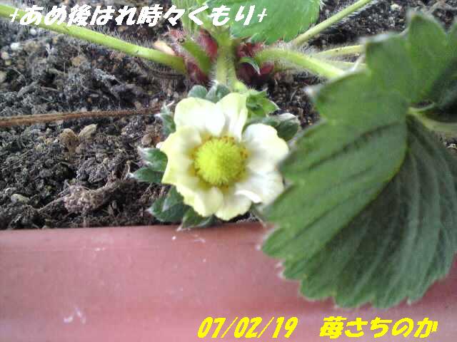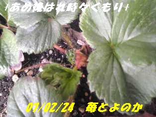 隣の苗にも蕾が出てきています。後とよのか二本の苗は、この苗からのランナーなんで まだ小さいけど新しい葉も出てきてるんで、もう少し暖かくなったら蕾もでるかな?この後我が家にある苺のデカイ葉を取って日当たり良くしといた。葉は5枚くらいあればいいみたいなんで・・・苺って花が咲いて3~4日ぐらいして人工授粉がベストらしくて(我が家8階なんで虫が来ないし)受粉したら赤くなるまで30~40日かかるって、どこかでみたけど時間かかるのねー一番最初にできた苺も時間がかかったけど寒いからだと思ってたんだけど普通でも時間かかるんだー食べれるのは、まだまだ先ですね~