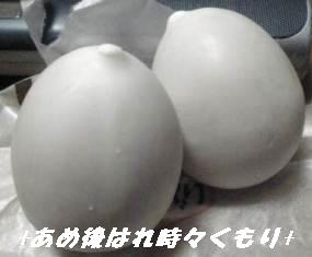こんなお菓子「たまご」の形をしてるんです。バタークリームみたいなのがコーティングしてある中はどんなのかな?っと割ってみると・・・