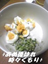胡瓜・エシャロットのみじん切り・ゆで卵・シーザードレッシング・マヨネーズ・林檎酢を混ぜて出来上がりです。エシャロットがお勤め品68円だったんで今回入れてみました普段は玉葱や自家製ピクルスを入れたりするんやけど、それとシーザードレッシングを隠し味に加えてみました。まろやかで美味しかったですよ・・・