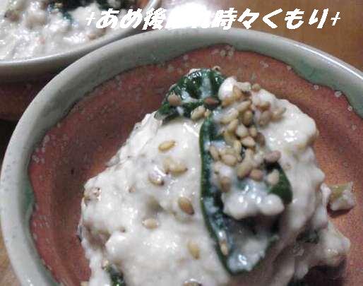 それと「白和え」畑の大根の間に植えてあった「ほうれん草」この畝も次の野菜たちの為に全部収穫してきました。ほんの少しの「ほうれん草」小さい豆腐一丁で出来ちゃいました。久しぶりに作って食べたなぁ~ほうれん草より豆腐が目立ってるけど・・・突き出し風に小鉢に入れてみたよ・・・なんだか我が家には珍しい献立になったな(笑)