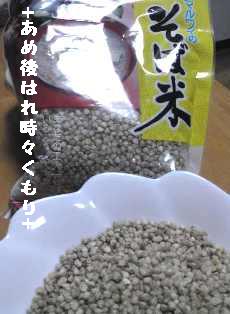 おじいちゃんが昔この「そば米」を石臼で粉にして蕎麦粉100%の手打ち蕎麦正月に作っていたなっと正月に田舎に行くのが楽しみだった。蕎麦粉100%なんで長くなくて太短い麺やったけど蕎麦の味が濃いくて美味しかった事覚えています。何十年か前に石臼あるのかな?っと探してみたけど影も形も無かった。まだどこかにあるんやろうか?蕎麦粉にしてみたいけど・・・性能の良いFPも我が家にはないしなぁー