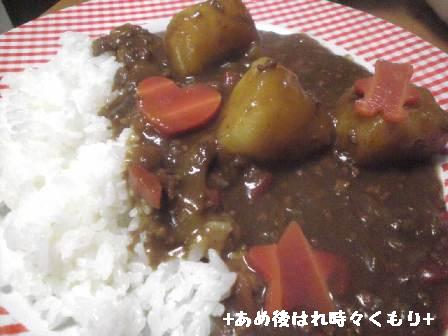 応援よろしくお願いします 昨日の夕ご飯は「じゃがころカレー」市販のカレールーを使って作ったけど一手間加えると美味しいカレーになるね。あんまりに普通のカレーなんで金時人参をクッキー型で抜いてトッピングしてみた。型を抜いてレンチンしただけ、後の人参は細かくカットしてカレーと一緒に煮込んでありますよ・・・