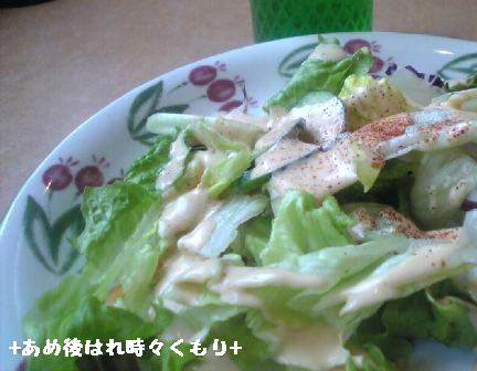 まずはサラダ ドレッシングはサウザンがたっぷりカロリー表示よりカロリー高そう!レタスとトレビスのサラダです。量は満足です。ちょっとだけ写ってるメロンソーダyuzuponの好物です仕事で飲むと元気がでるドリンクだったのだ…