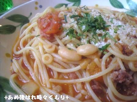 yuzuponが頼んだメンイ「野菜トマトソースパスタ」けしてスープパスタではないはずなのだが・・・ソースがパスタに絡まないよ~茹で汁を切らずにソースを絡めたような感じ・・・ここで分析してみた(嫌なクセ)入っているものは小さなリングマカロニ(なんで?)白いんげん・スクエアーなじゃが芋・人参etcミンチのように塊になったベーコン謎が解けた!コレはミネストローネを延ばして使用してるな・・・だから余計にスープパスタみたいに・・・同じ使うならホールトマトを加えて煮詰めれば絡みやすいソースになるのに・・・残念やわぁ~