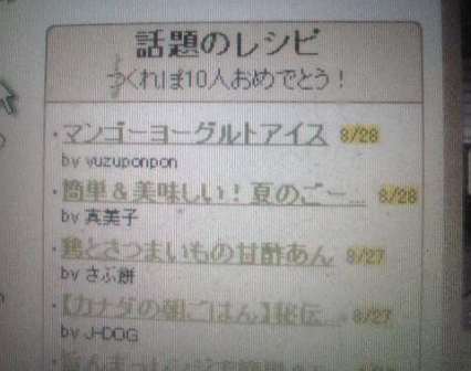今月18日に・・・クックパッドの「話題レシピ」に